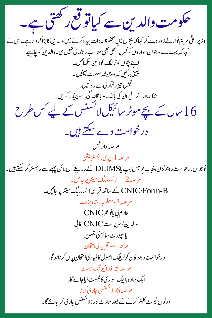 Step-by-Step Process for 16-Year-Olds in Punjab to Get Motorcycle Licenses