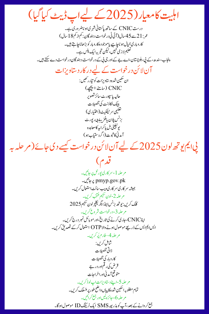 Quick Information Table for Apply for PM Youth Business & Agriculture Loan