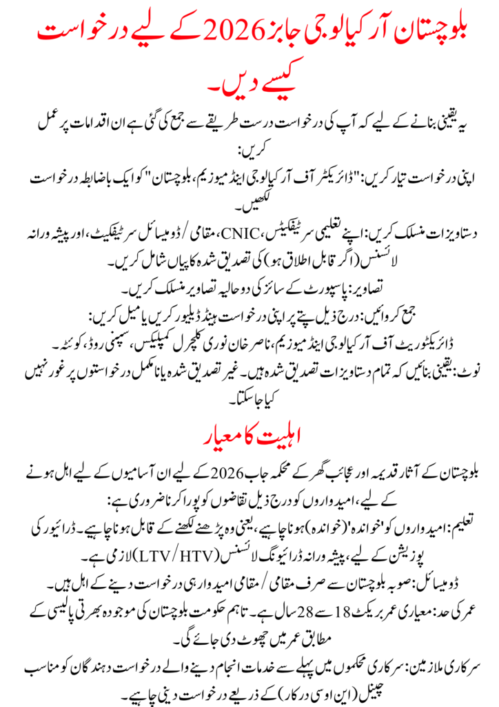 How to Apply for Balochistan Archaeology Jobs 2026