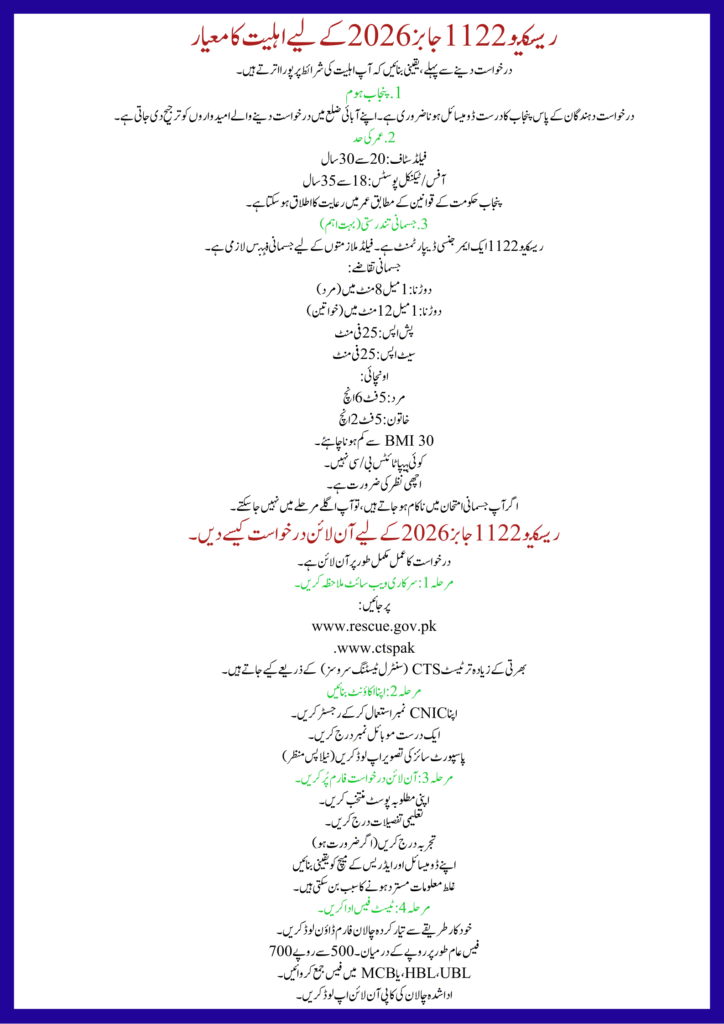 Eligibility Criteria for Rescue 1122 Jobs 2026