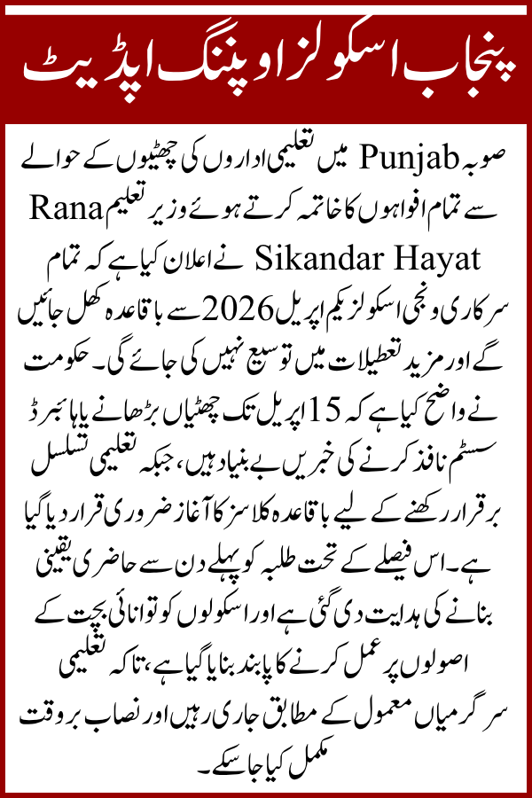 | Status Update | Punjab Announces Schools Opening Date 2026 |