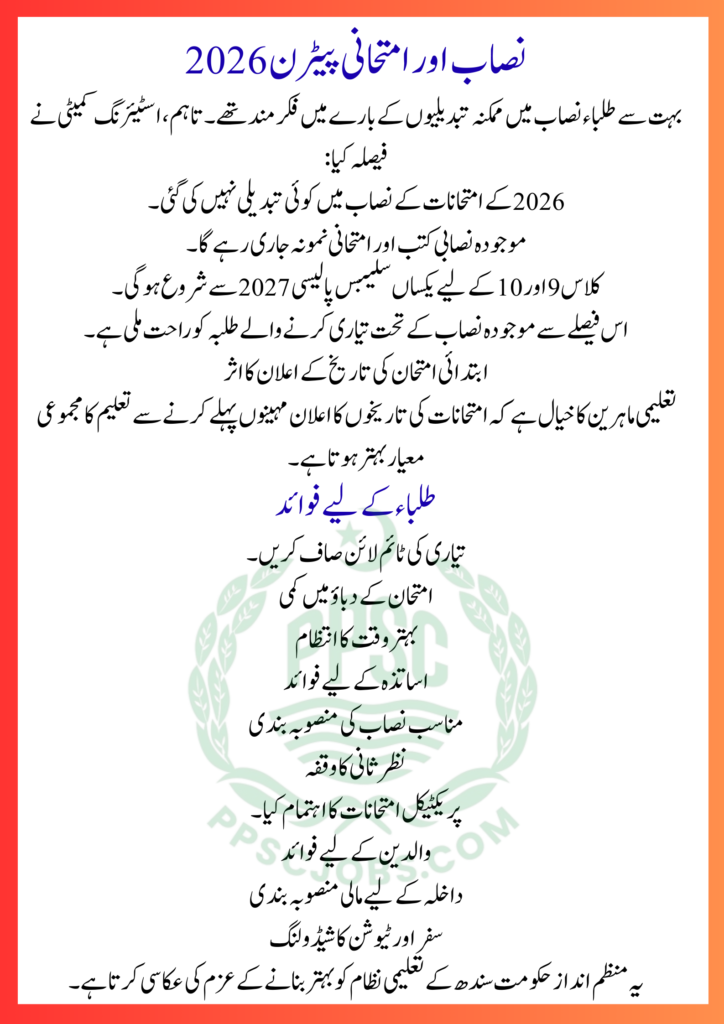 By announcing the examination schedule months in advance, the government has provided relief to thousands of students studying under different boards in Sindh. Early confirmation allows colleges to complete their syllabus on time and gives students proper preparation time without confusion or last-minute changes.